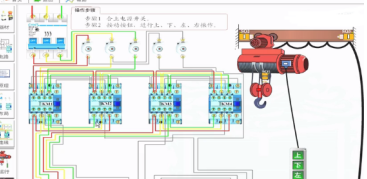 2、接著再看下器材,空氣斷路器,交流接觸器,啟動(dòng)按鈕、限位行程開關(guān)等,按照擺放規(guī)則放置到萬用表操作面板中,分析下實(shí)物接線圖,看下各個(gè)功能的線圈串聯(lián)是否正確。