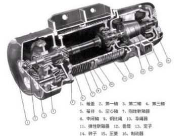 電動(dòng)葫蘆有起重和行走兩大功能,而起重部分便是電動(dòng)葫蘆起吊重物的關(guān)鍵部位。當(dāng)操作人員按動(dòng)電動(dòng)葫蘆的開始按鈕后,電機(jī)便將電能傳遞給一端的錐形轉(zhuǎn)子電動(dòng)機(jī),電動(dòng)機(jī)再通過花鍵套和傳動(dòng)軸將動(dòng)力傳遞到另一端的減速機(jī),減速機(jī)經(jīng)過減速的動(dòng)力,再傳遞到中間的鋼絲繩卷筒上,之后鋼絲繩卷筒帶動(dòng)鋼絲繩和吊鉤以及吊鉤底部的重物進(jìn)行上升、下降操作。