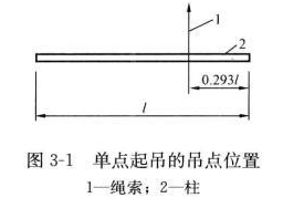 1、用1個(gè)吊點(diǎn)時(shí),吊點(diǎn)位置應(yīng)在距起吊端0.293l(l為物體長(zhǎng)度),如下圖3-1所示。