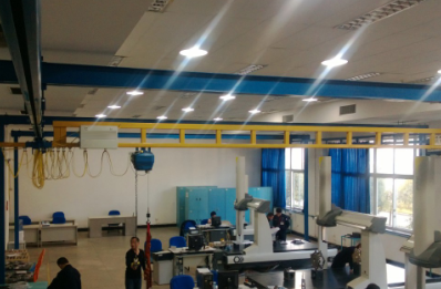 該實(shí)驗(yàn)室人員經(jīng)過商量,決定在實(shí)驗(yàn)室上方安裝一個(gè)KBK軌道,再懸掛上環(huán)鏈電動(dòng)葫蘆,利用電動(dòng)葫蘆來吊運(yùn)起飛機(jī)工件,如此以來,僅靠一人或者兩人就能輕松移動(dòng)和測(cè)量每一個(gè)飛機(jī)工件。